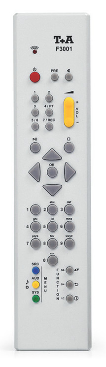 Проигрыватель комплектуется системным пультом ДУ с нестандартной раскладкой и необычными обозначениями клавиш (точно такой же у предварительного усилителя Р 3000 HV). Советуем сверяться с инструкцией.