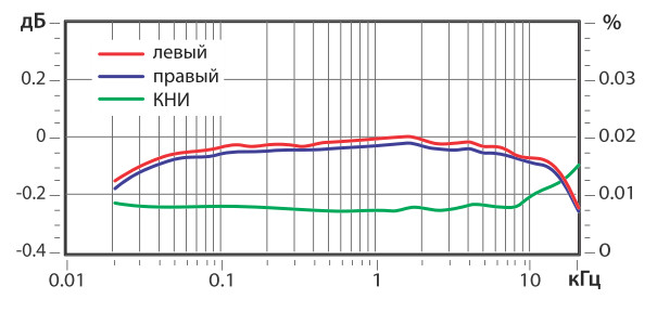 - Дисбаланс каналов на 1 кГц (L-R) 0,02 дБ